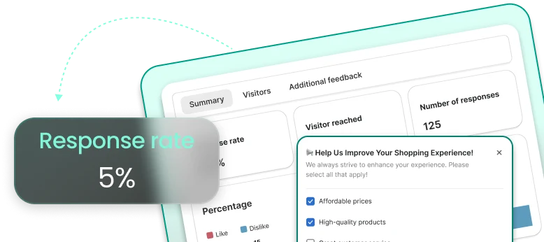 Ask focused questions using multiple choice or like-dislike formats on specific pages, devices, or after a time delay