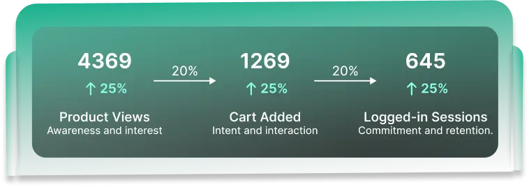 See drop-offs clearly from product view to checkout to successful order so you know which step to optimize first