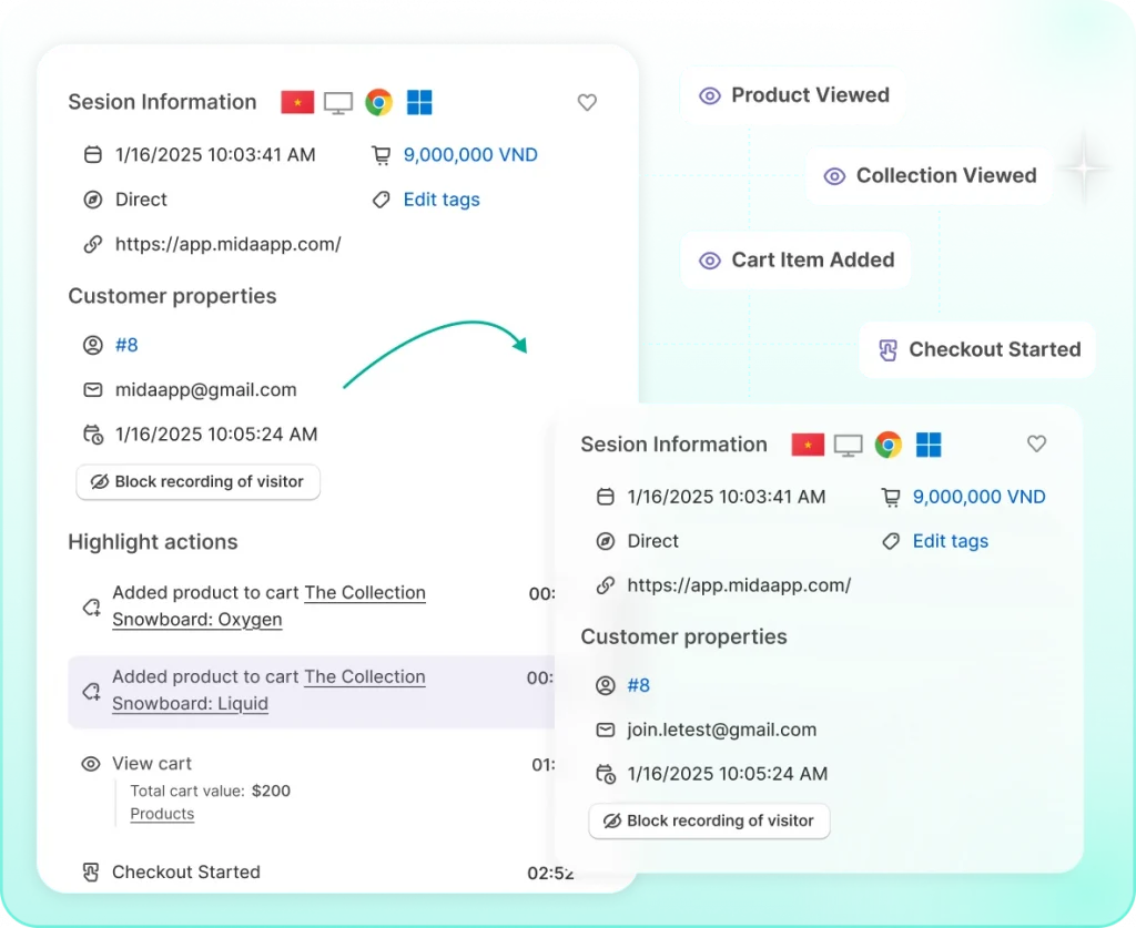Session replays built exclusively for Shopify, giving you visibility down to customer profiles, orders, and on-page elements that other tools cannot match.